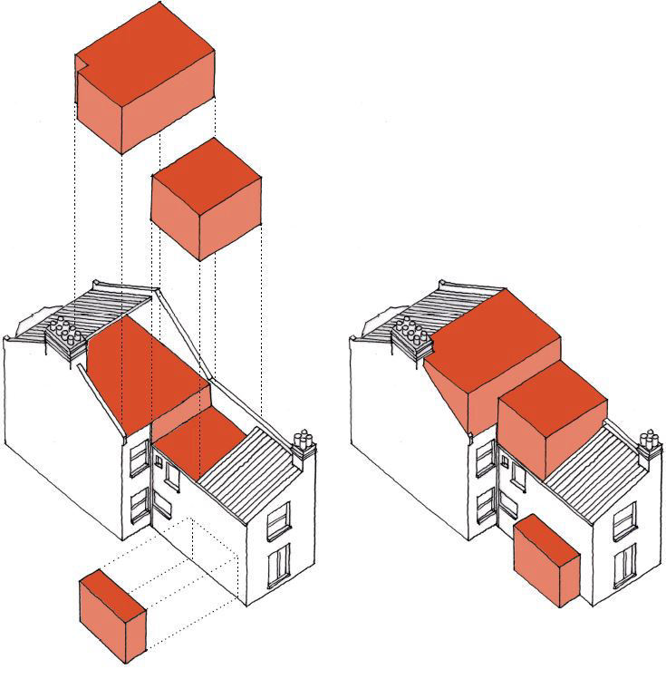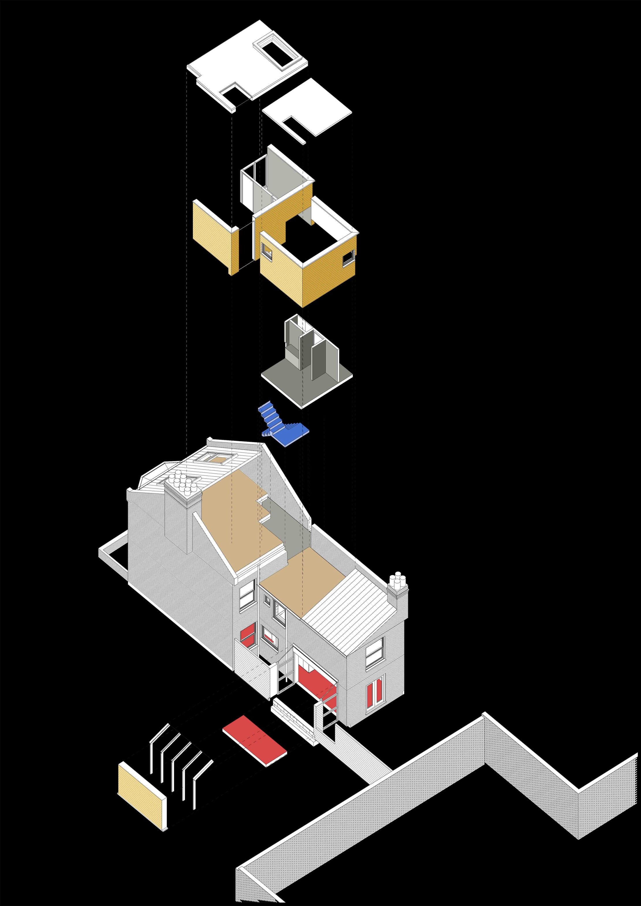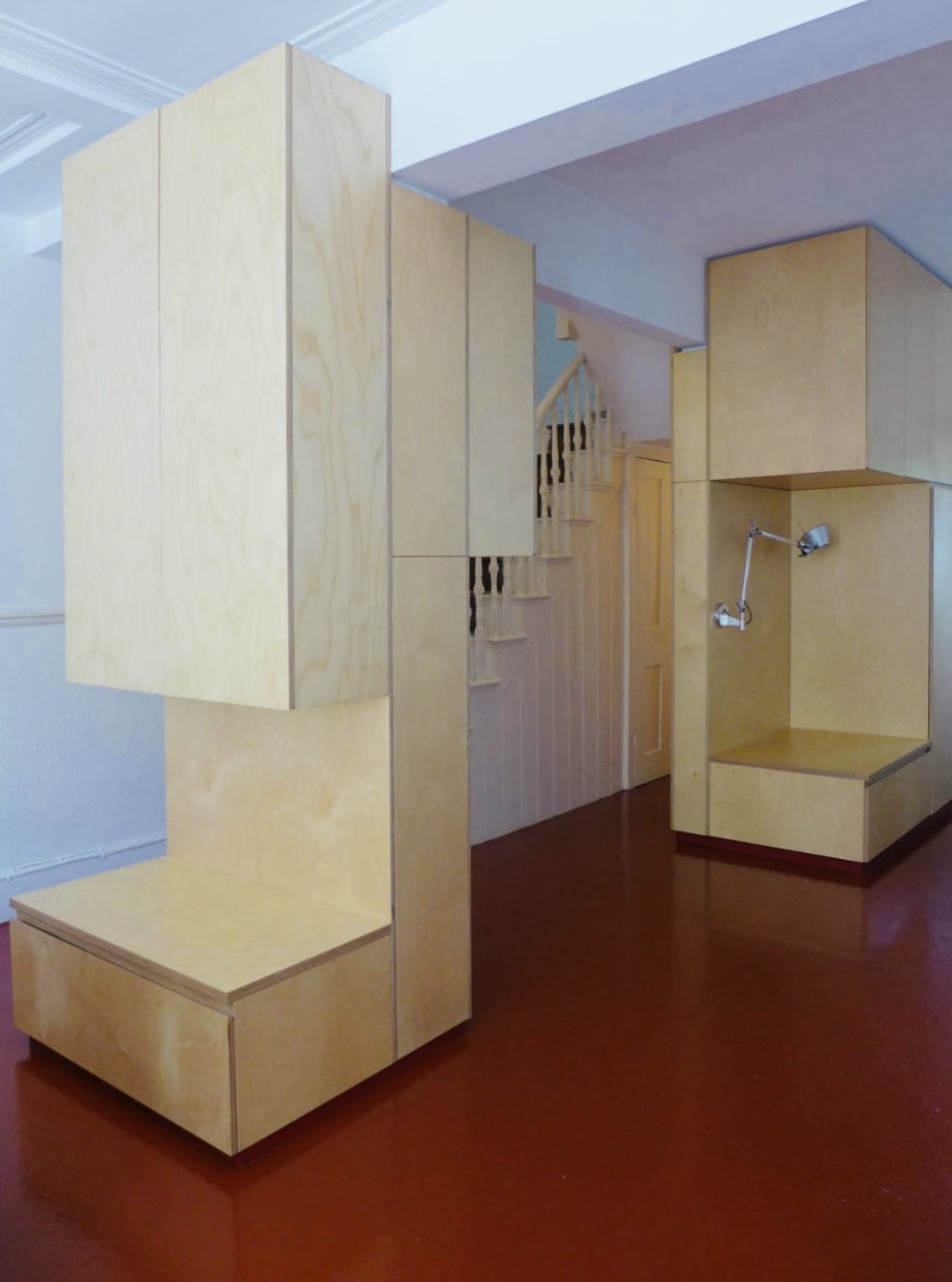 Extension / Refurbishment This project was a full refurbishment and loft extension of a 3 bedroom Victorian terrace in South East London. Main part of the design concept was to create an open plan layout on the ground floor in order to visually connect the kitchen and dining space at the rear of the building with the living room and entrance area at the front. Bespoke plywood units define the spaces and provide well needed additional storage.